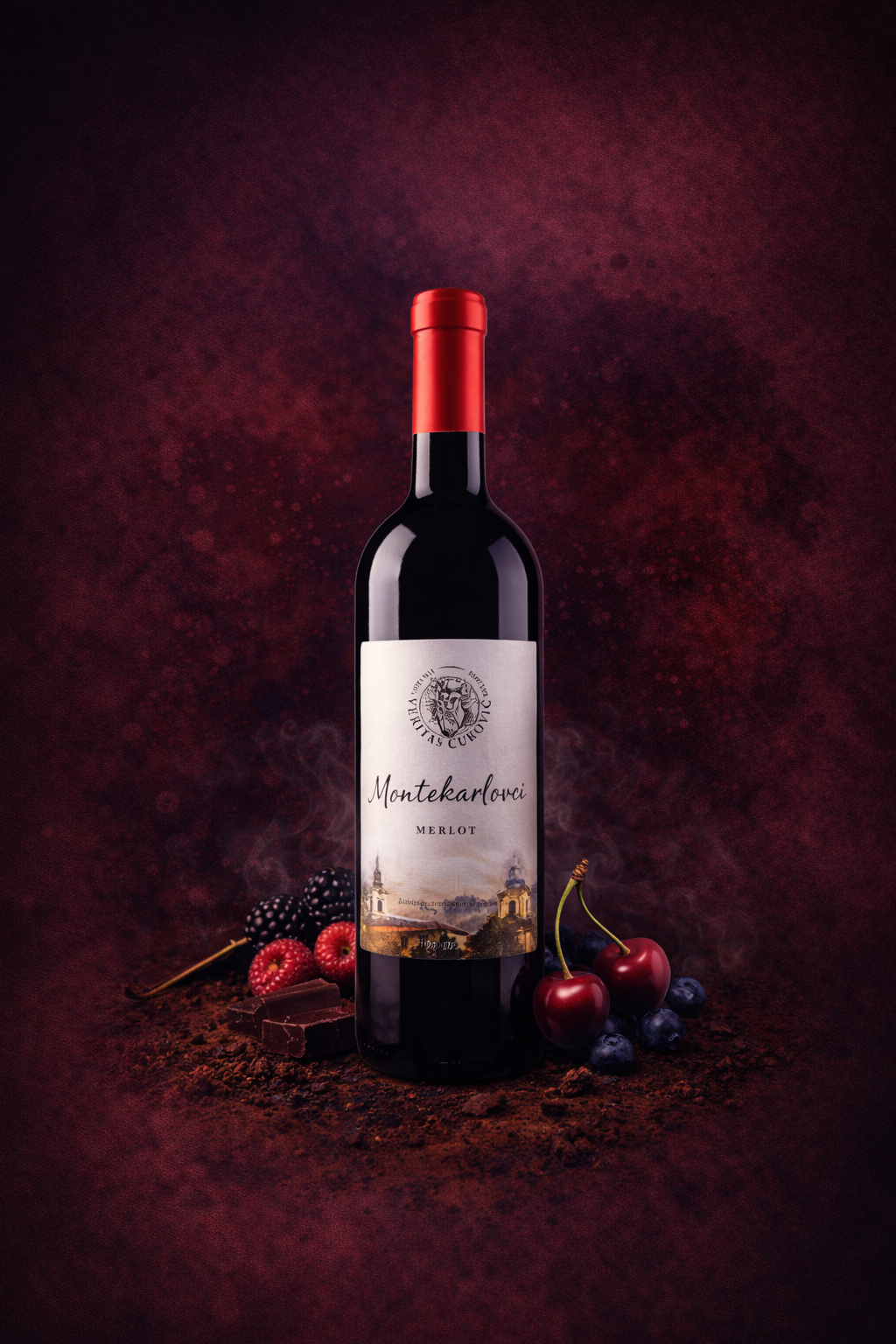 Montekarlovci je čist Merlot, punog i zrelog karaktera. U čaši donosi izražene note zrelog crvenog voća, višnje i šljive, uz blage tonove začina i meku taninsku strukturu. Uravnoteženo i pitko vino, sa toplom završnicom, idealno za gastronomska uparivanja i lagano uživanje uz obrok.
